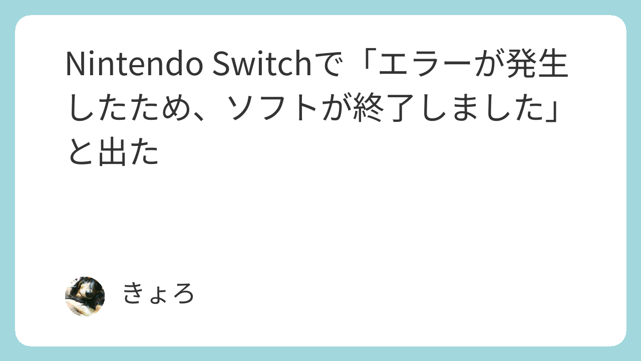 Nintendo Switchで「エラーが発生したため、ソフトが終了しました」と出てゲームができない